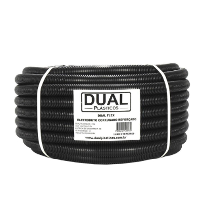 Conduíte Eletroduto Corrugado Reforçado Preto 25mm 3/4 com 50 metros - Dual