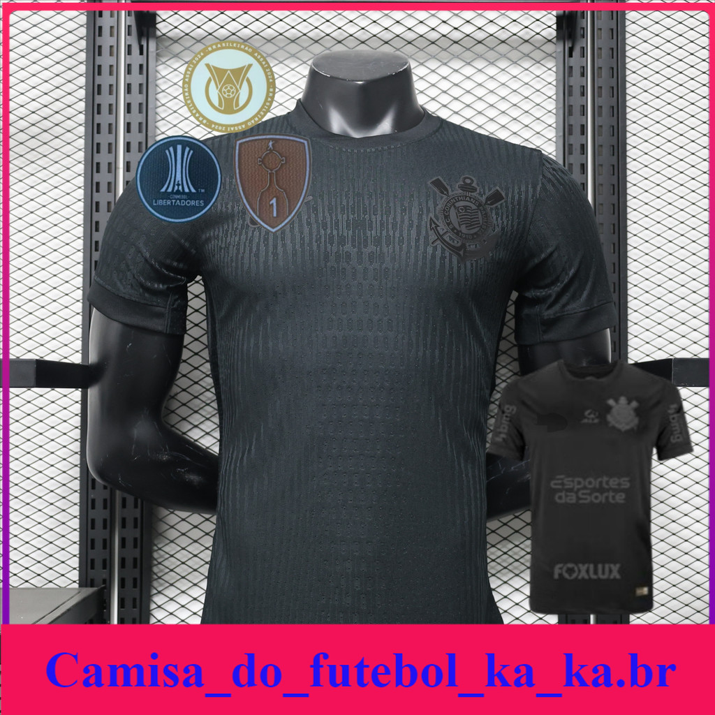 Camisa Esportiva Masculina de Futebol 24 /25 S-P Away Black Red Jersey 2024 /2025 (Versão Jogador) {Temporador}
