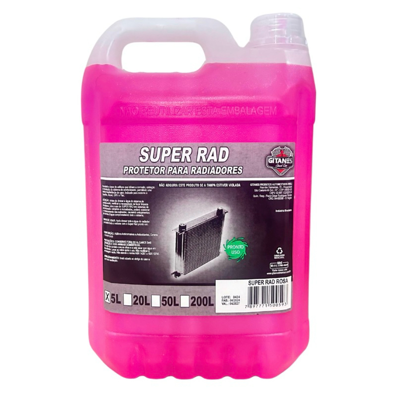 Aditivo Fluído Líquido De Radiador Rosa Pronto Uso 5L Super Rad Gitanes