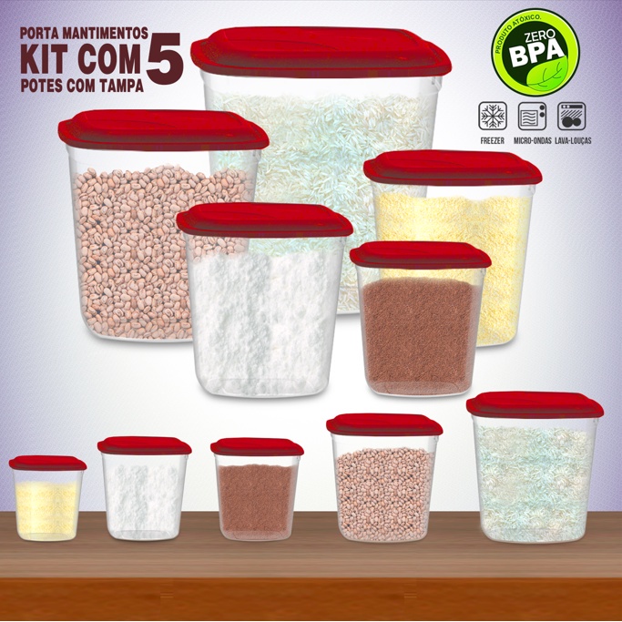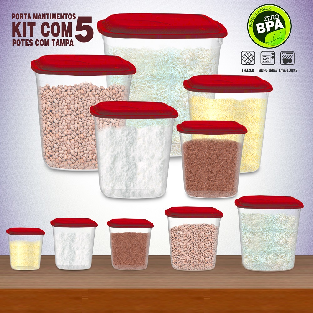 Kit Porta Mantimentos Com 5 Peças Vermelho Uninjet
