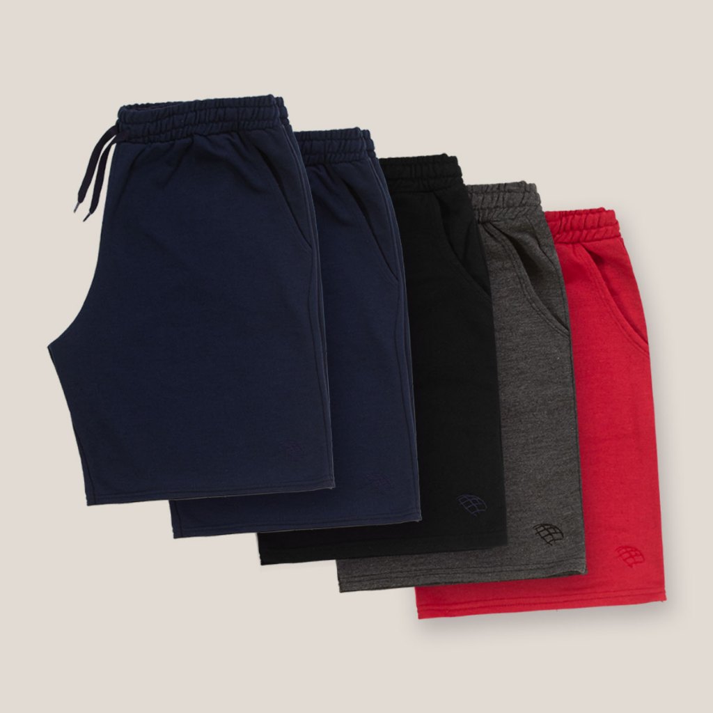 Kit 5 Bermudas Moletom Masculina Adulto Plus Size G1 G2 G3 Bolso Elástico Reforçada 5 Cores Sortida