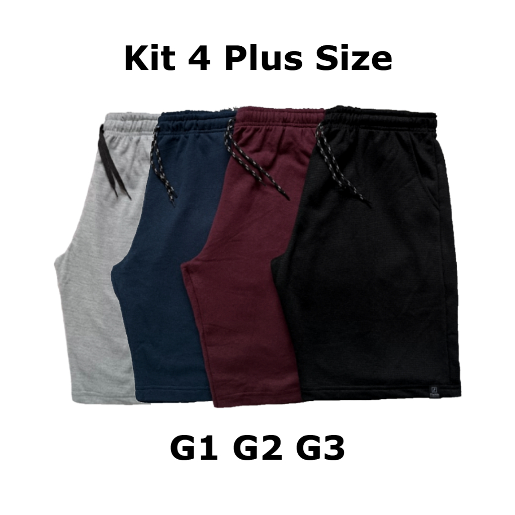 Kit 4 Bermudas Moletom Masculina Plus Size G1 G2 G3 Grande Bolso Regulagem Reforçada Cores Sortidas