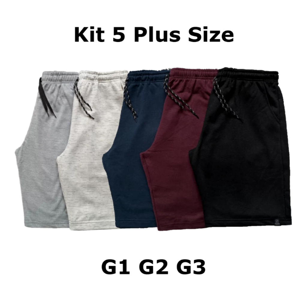Kit 5 Bermudas Moletom Masculina Adulto Plus Size G1 G2 G3 Bolso Regulagem Reforçada Cores Sortidas