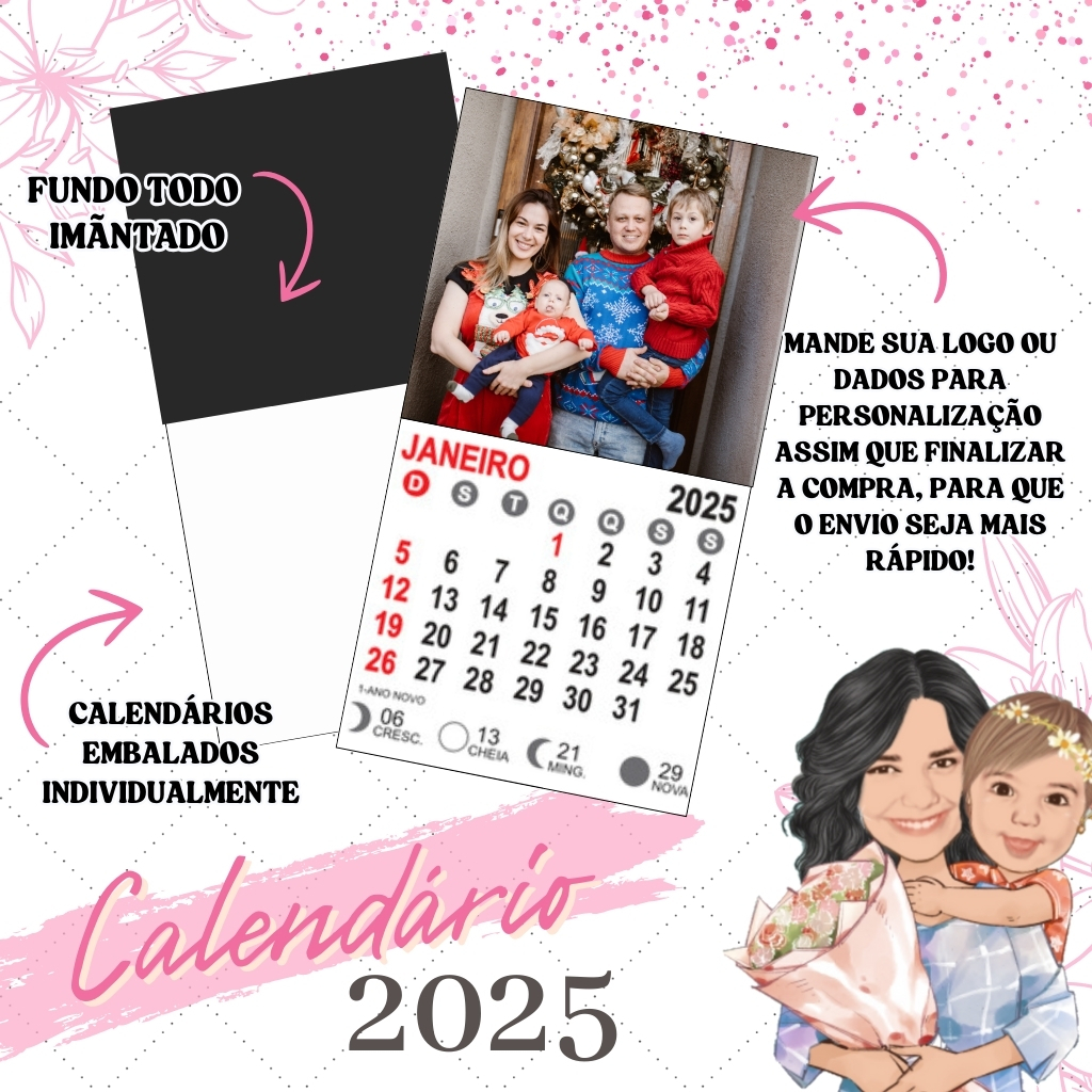 Lembrancinha Mini calendário 2025 * 20 a 100 unidades lembrancinha personalizado para ima de geladeira