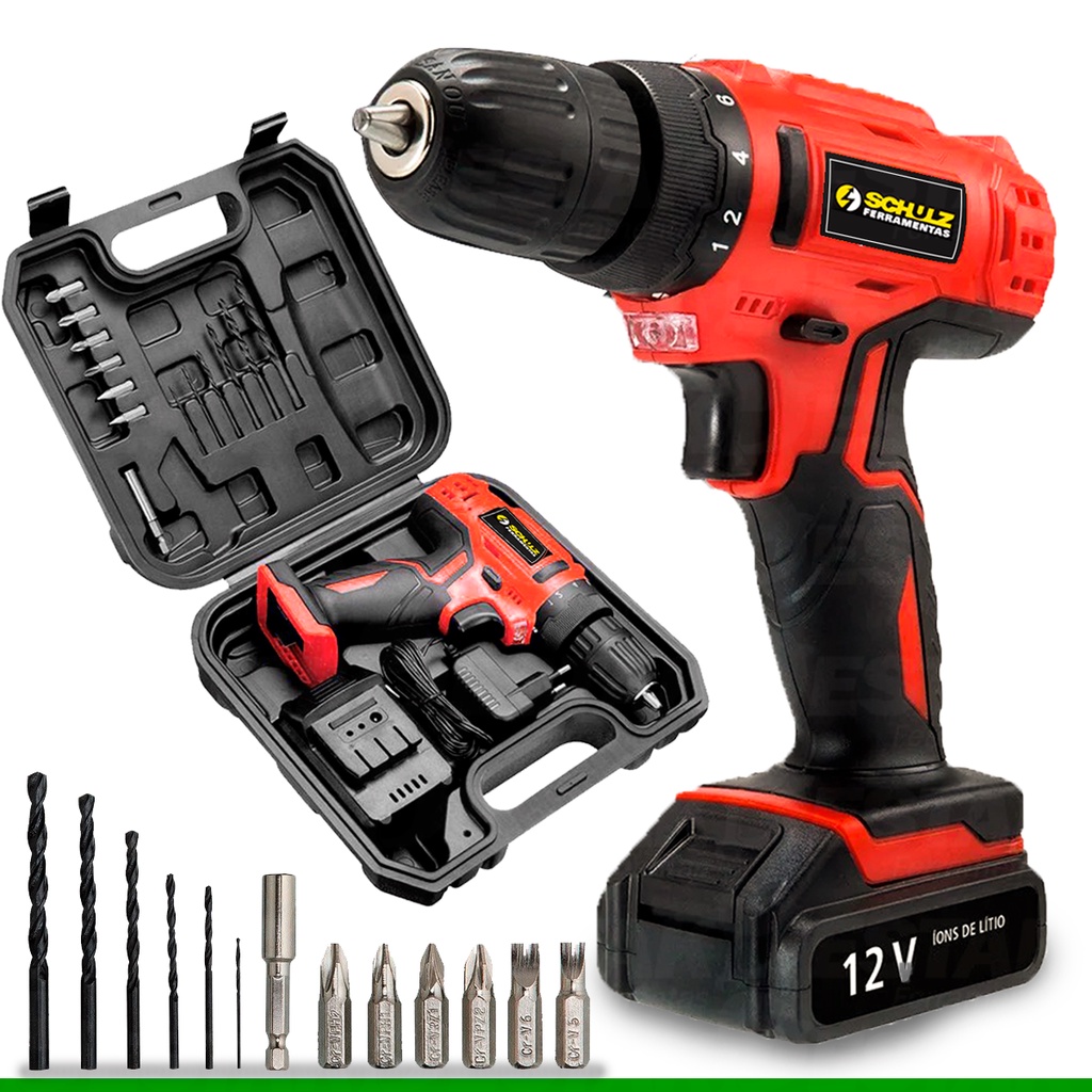 Parafusadeira Furadeira 12V A Bateria Sem Fio Íon-litio Com Maleta E Carregador