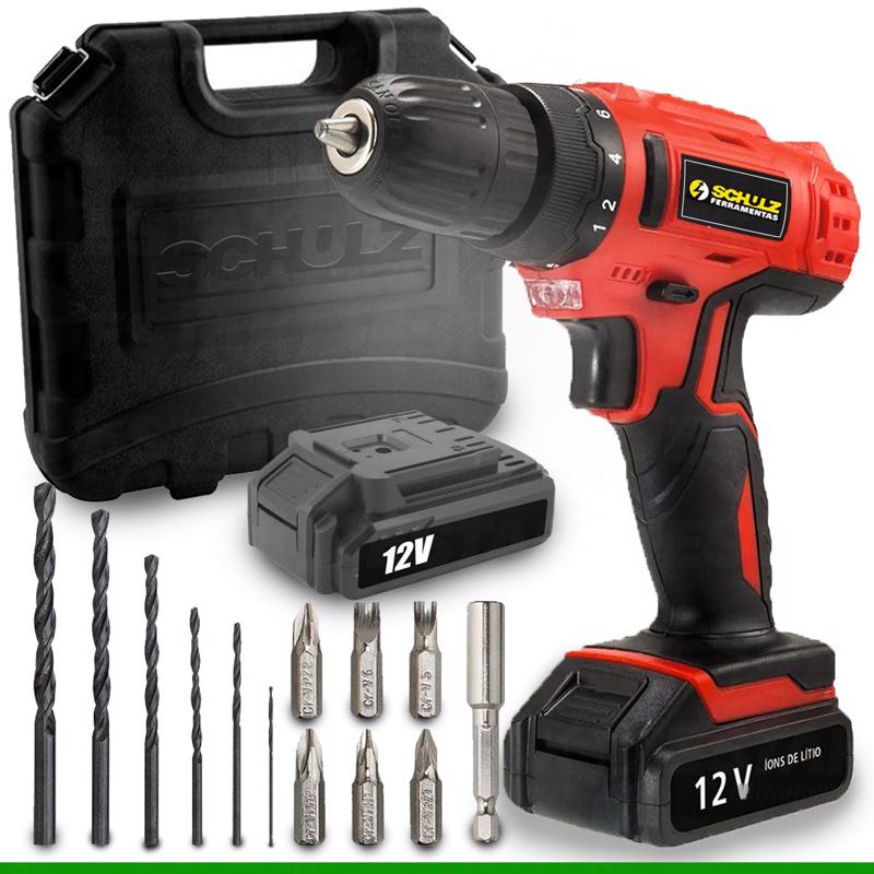 Parafusadeira Furadeira 12V A Bateria Sem Fio Com Maleta E Carregador