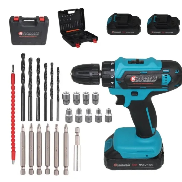 Parafusadeira Furadeira Sem Fio A Bateria 25V Maleta De Ferramentas 2 Baterias