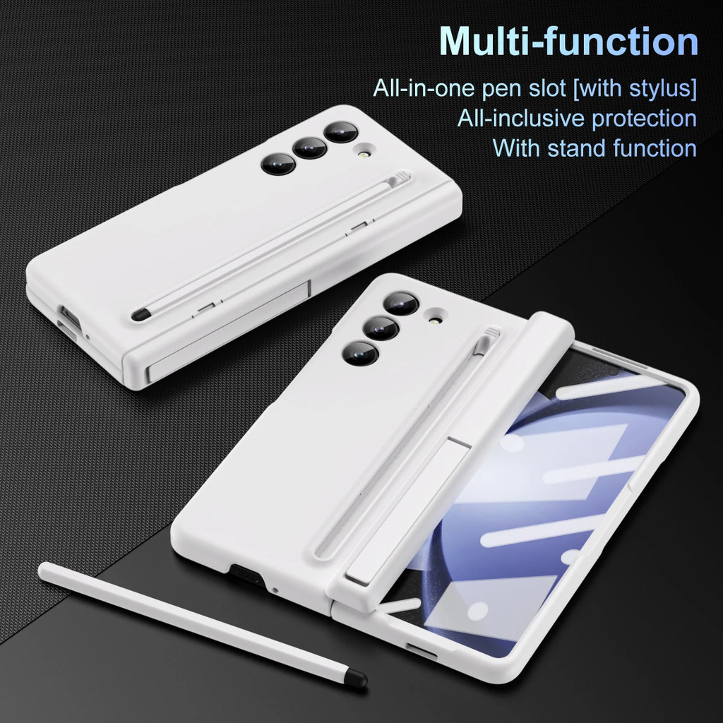 Estojo Porta-Caneta Para Samsung Galaxy Z Fold 3 4 5 6 Fold5 Com Suporte Proteção Frontal Do Filme De Vidro ZFold6 Luxury Cover