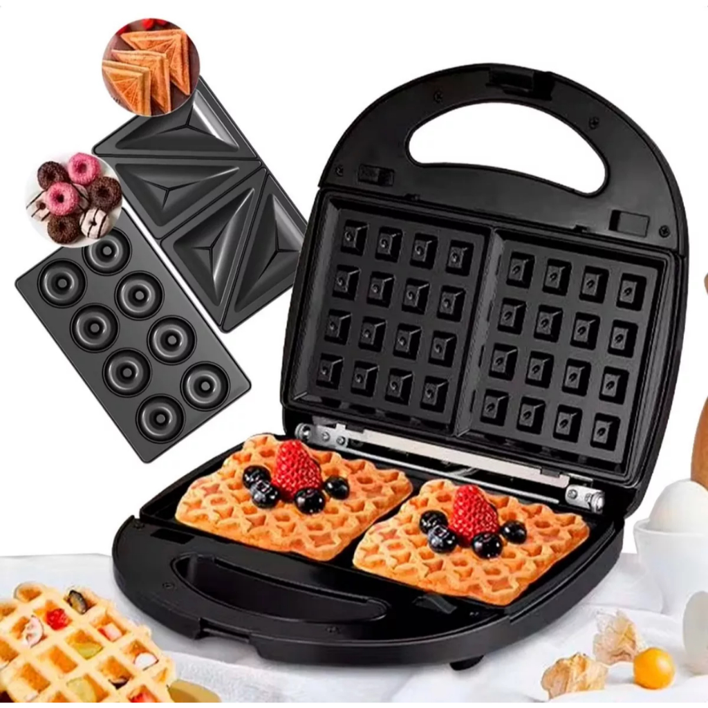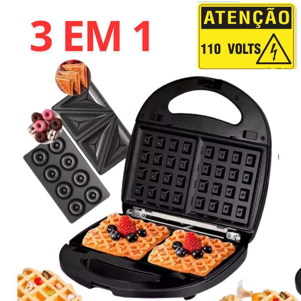 Máquina De Donuts Wafler Sanduicheira Multifuncional Lanches 3 Em 1 110V