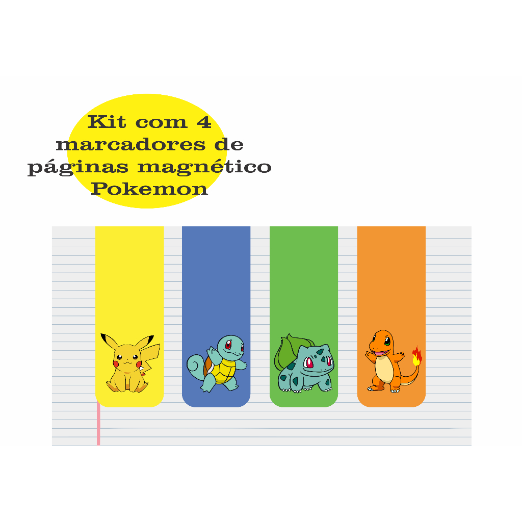 Marcador De Página Magnético Kit 4 Marcadores Pokemon - Ímã
