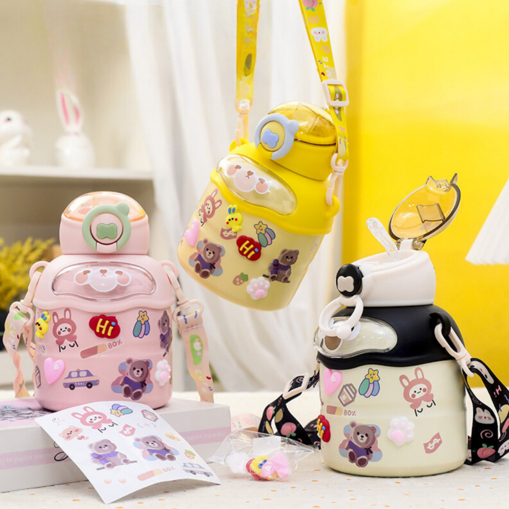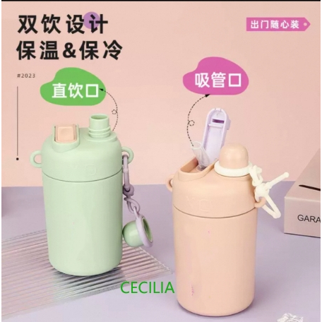 Garrafa Térmica Infantil/Adulta com alça antivazamento tampa EmborrachadaAço Com Bico Inox 450ML Vacuum Cup Garrafa de água