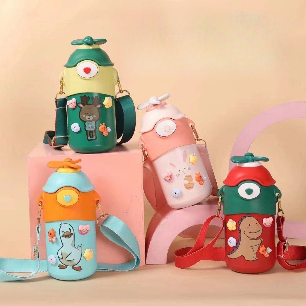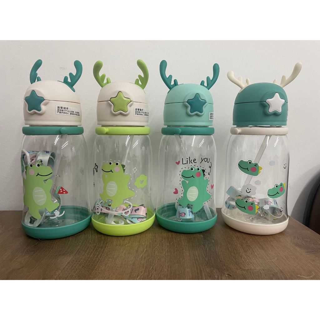 Promocao Garrafa infantil criança com tampa e canudo e alça chifre Envio 24h