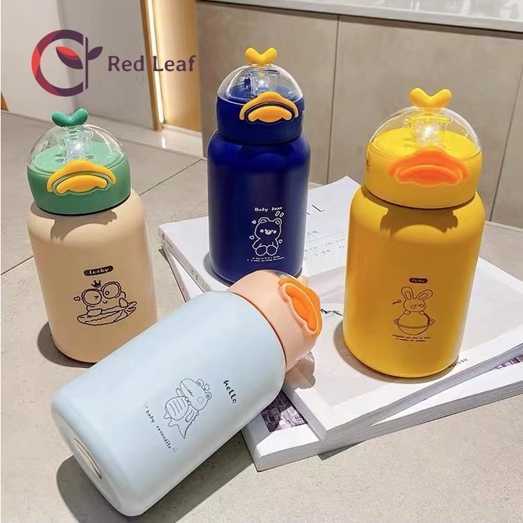 Garrafa Térmica Infântil Inox Com Canudo Alça Tampa de Pato de 450ml Água