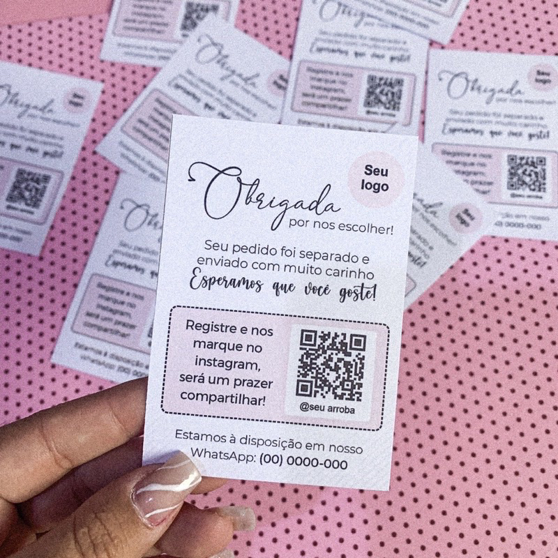 100un - Cartão de agradecimento ao cliente personalizado para enviar junto com seus pedidos - papel sulfite 75g