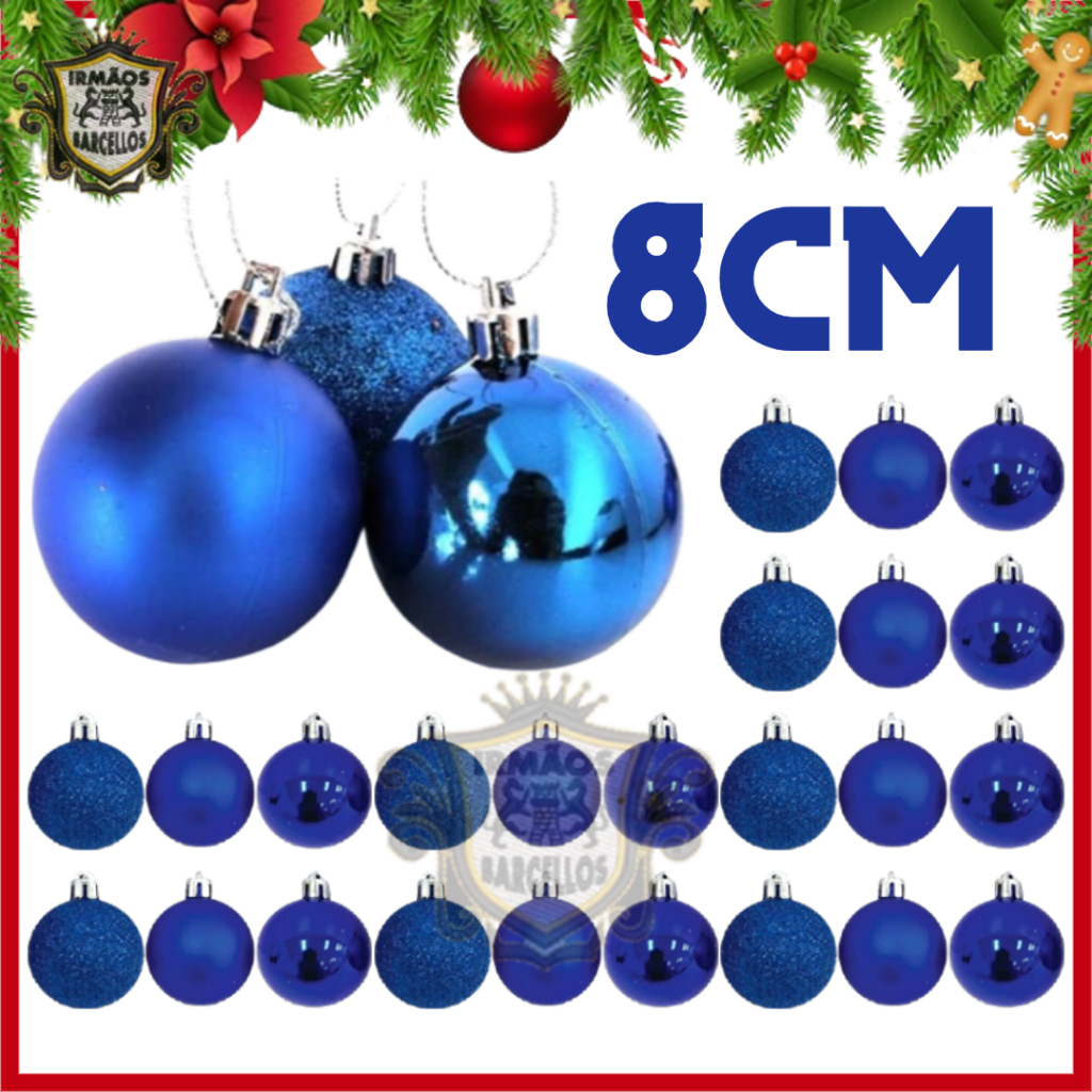 Kit 36 Bolas De Natal Azul Claro Escuro 8cm Mista Lisa Fosca Glitter Decoracao Arvore de Natal Pendente Enfeite