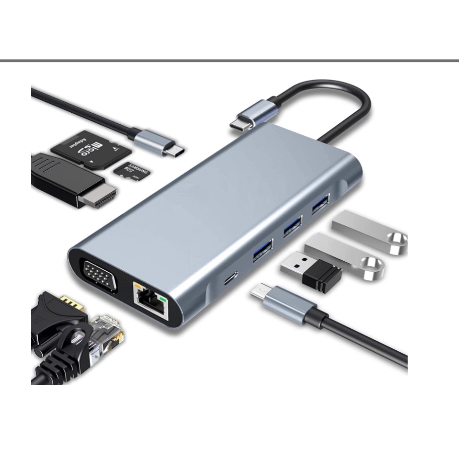 Adaptador 11 Em 1/Tipo C Dock USB Hub 3.0 Divisor Multiport 4K RJ45 HDMI-Compatível SD/TF VGA PD Para MacBook iPad Xiaomi