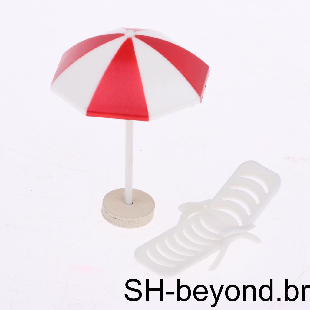 1/2/3 5 Conjunto Cadeira De Praia Miniatura Modelo De Guarda-Chuva Para Decoração De Jardim Dollhouse