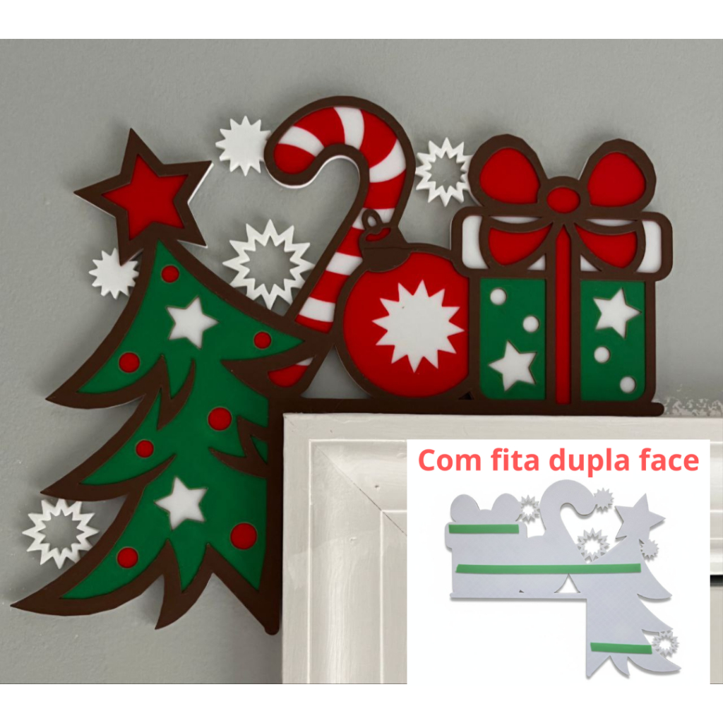 Enfeite de Natal Decorativo para Porta Janela ou Parede - Árvore, Presentes e Bengala Natalina - Envio Imediato