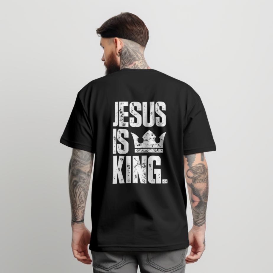Camiseta Masculina Gospel Jesus Is King 100% Algodão Costas Estampadas Unissex