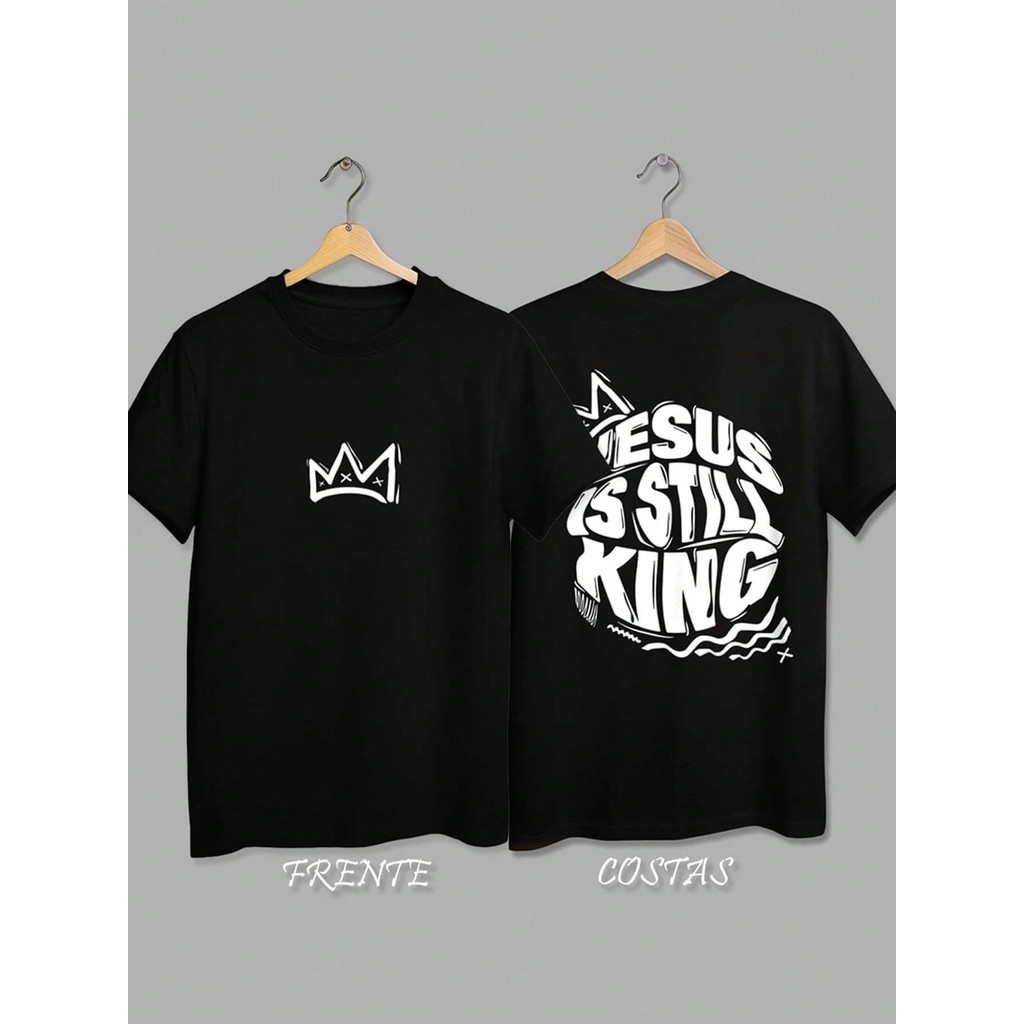 Camiseta Unissex Infantil Juvenil e Adulto em Algodão Estampa Frente e Costas Gospel Jesus Is Still King
