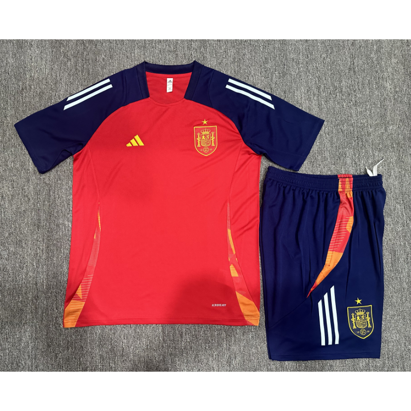 2024/25 Conjunto De Time Manga Curta Espanha Camisa Treino Camiseta De Treinamento De Futebol + Short Esportivos Masculinos Para Adultos E Crianças
