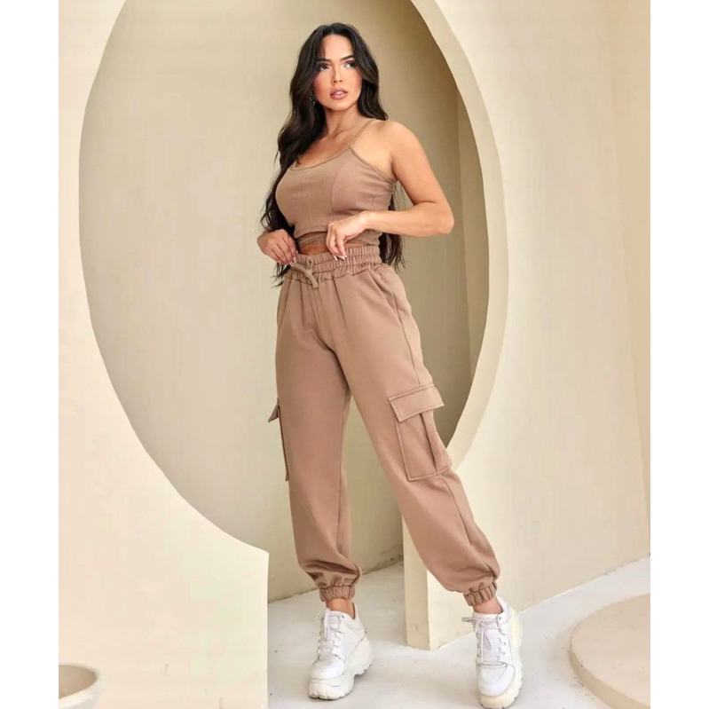 Calça jogger cargo P, M, G, GG moletom flanelado - moda inverno Feminina