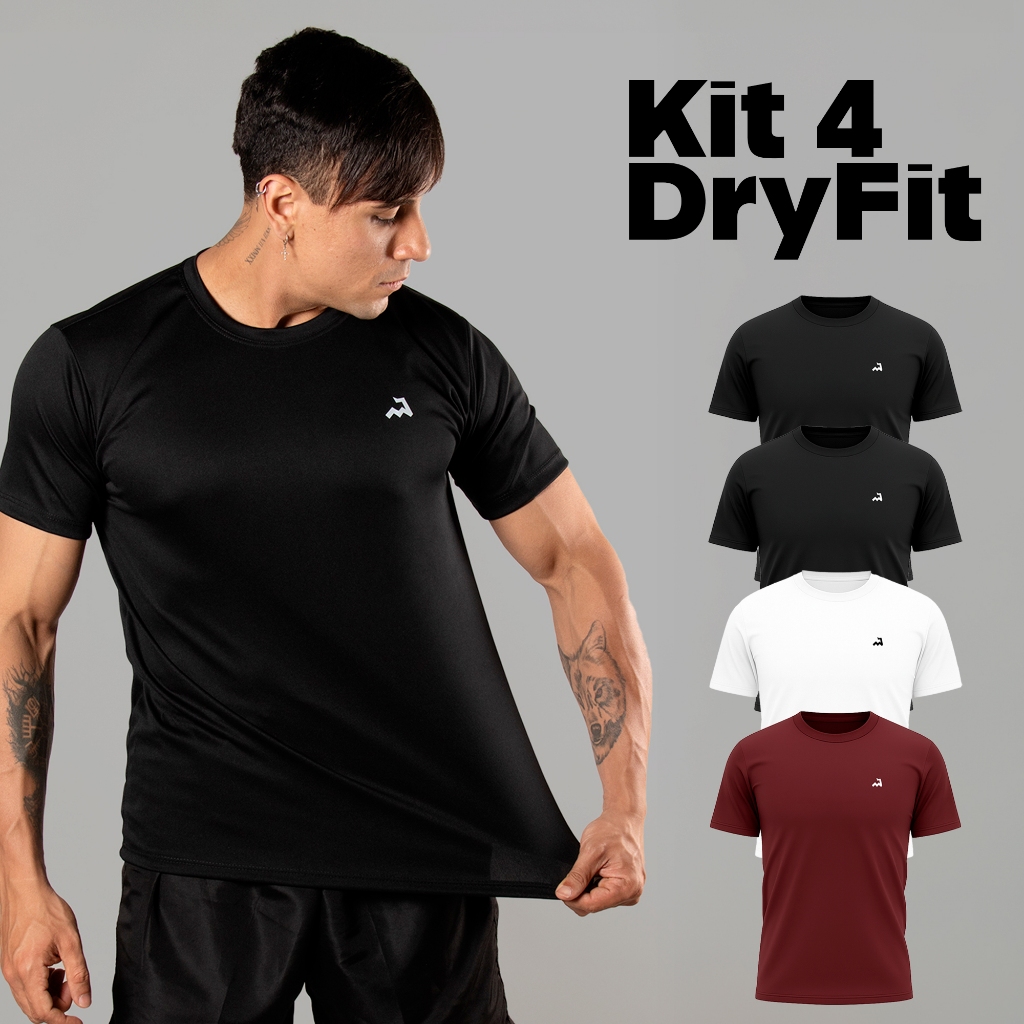 Kit 4 Camisetas Dry Fit Masculina Manga Curta Fitness Pra Treino Academia e Corrida Drifit Anti Suor