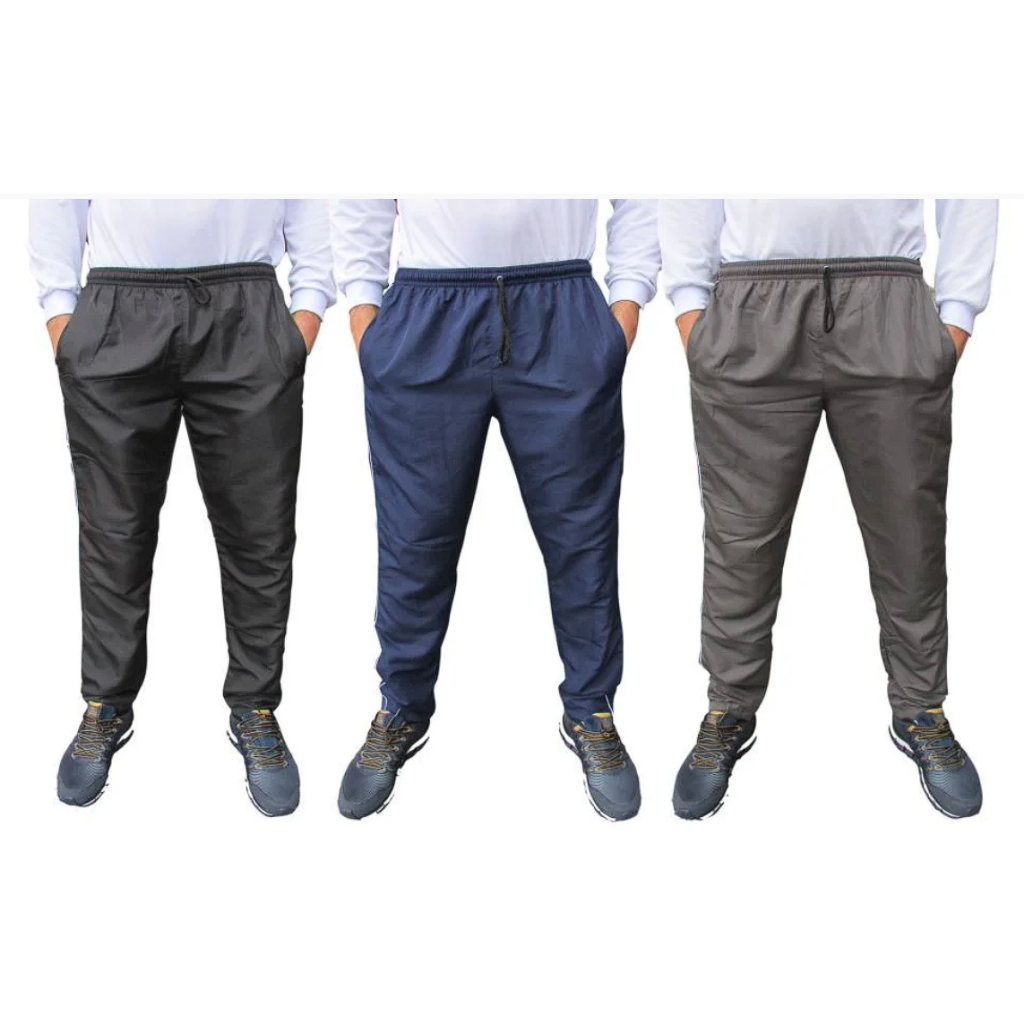 Kit 3 Calças Tactel Masculina Com 3 Bolsos E Costuras Reforçada – Calça Masculina Esportiva Lisa