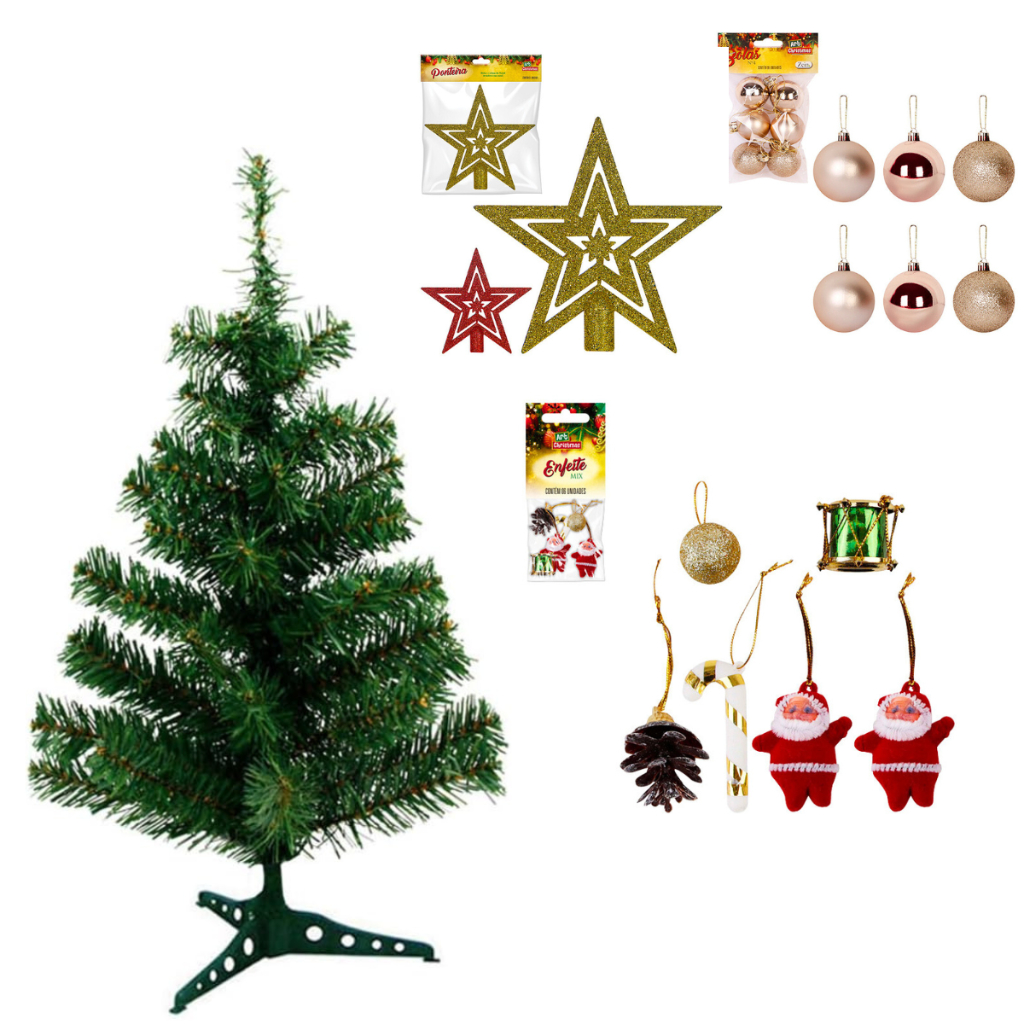 Arvore de Natal Pequena de Mesa Decorada 60cm com 50 galhos Pinheiro Verde Tradicional