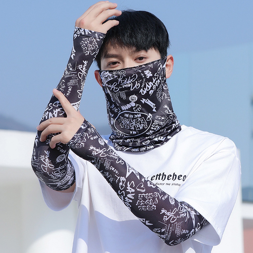Manga De Braço Fria Para Esportes Ao Ar Livre + Máscara Facial Com Laço Orelha Proteção UV