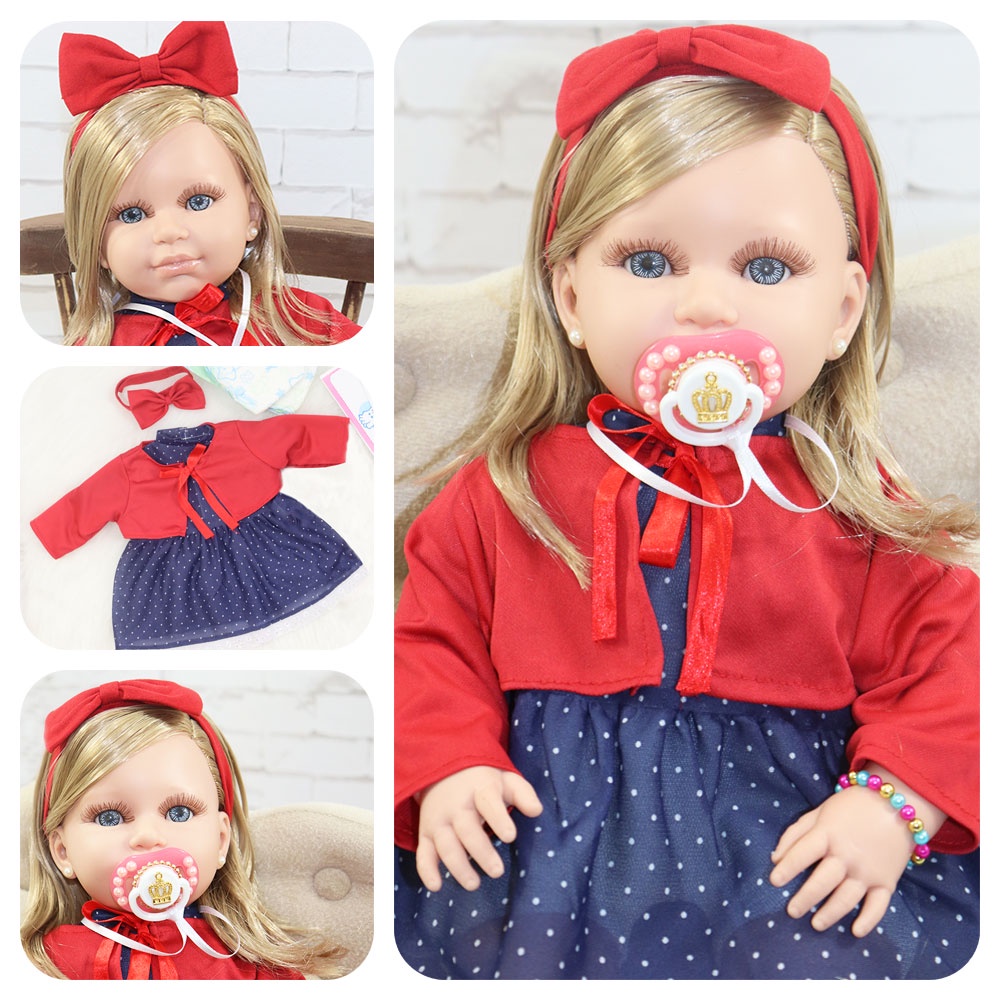 Boneca Silicone Menina Realista Bebe Reborn Eloise Cabelo Castanho Vestidinho Recem Nascido Baby Com Acessorios