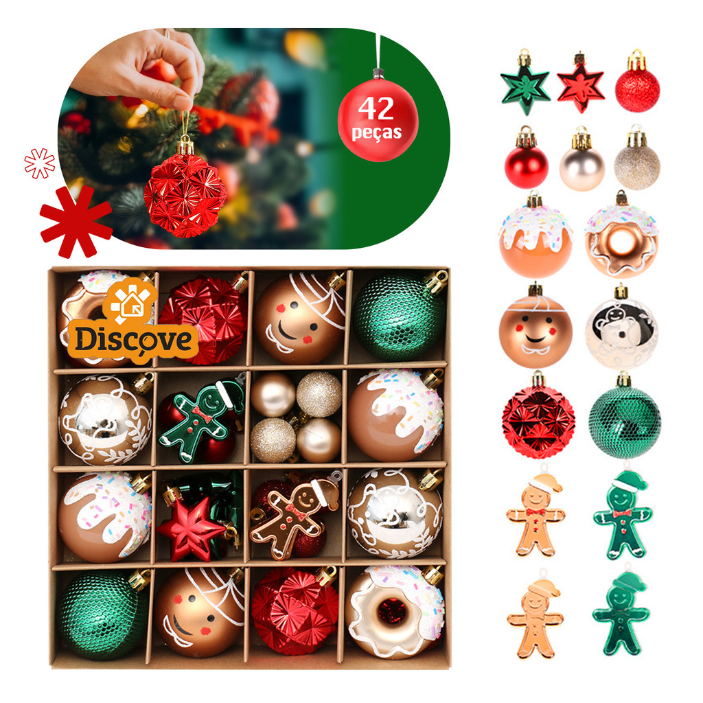 Kit 42 Bolas de Árvore Natalina Enfeites para Natal Decoração Luxo Pisca Pisca Bolinhas Bonecos