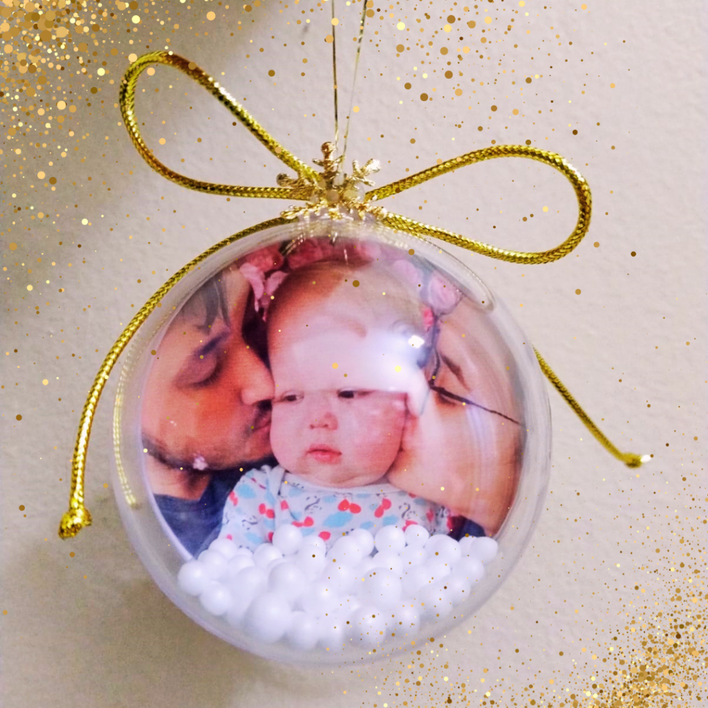 Bolinha de Natal 6,5 Esfera Acrílica kit 20 unds, Com encaixe para fotos