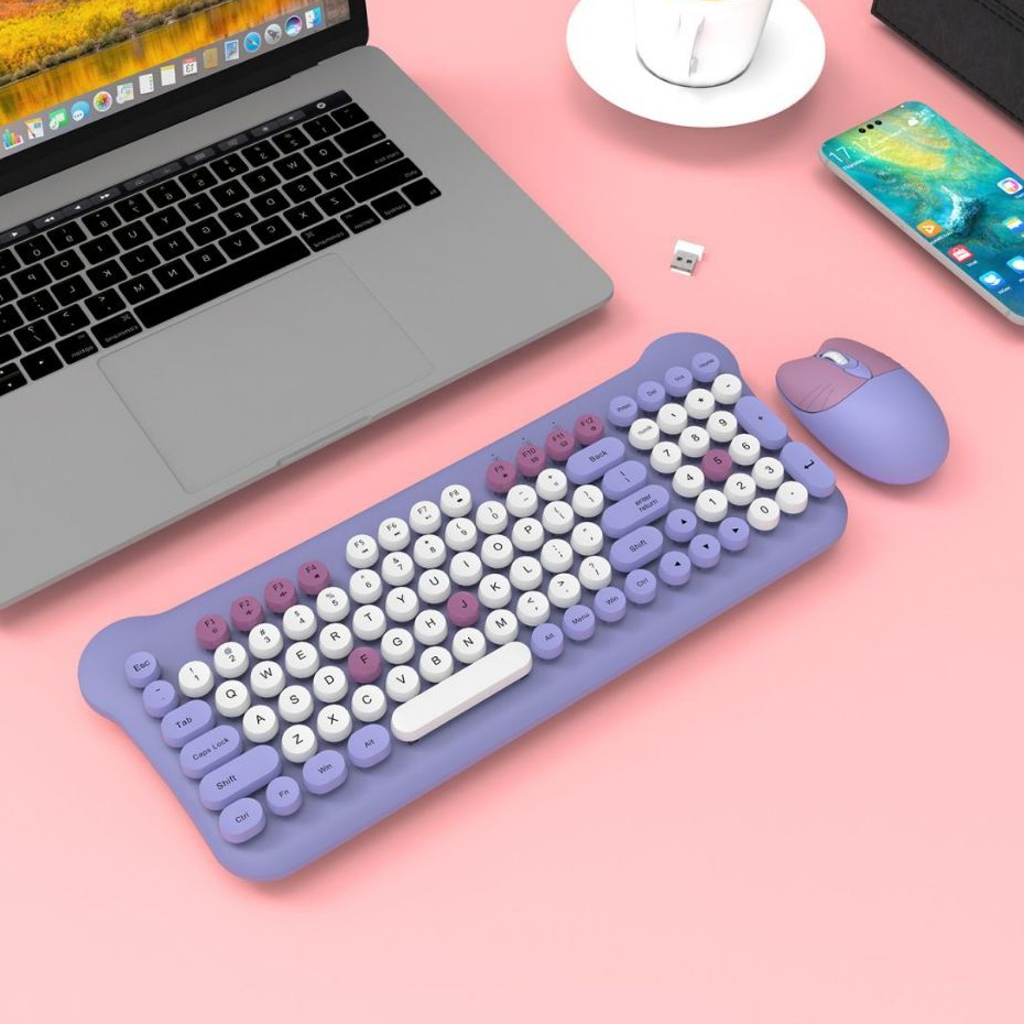 Kit Teclado e Mouse Sem Fio Colorido Portátil USB Com Receptor 2,4GHZ