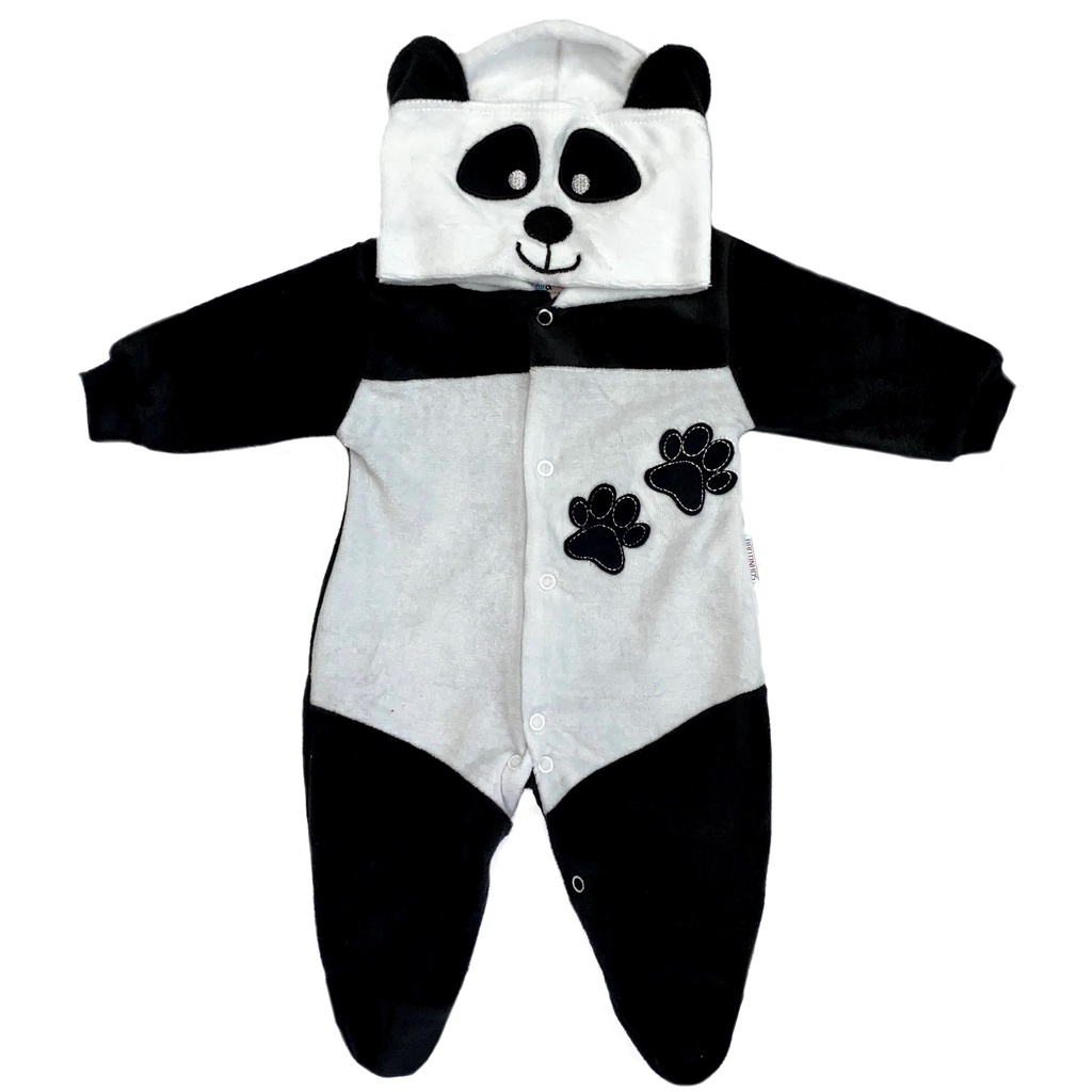 Macacão de Bebê Plush com Capuz Bordado Bichinhos Fantasia Panda