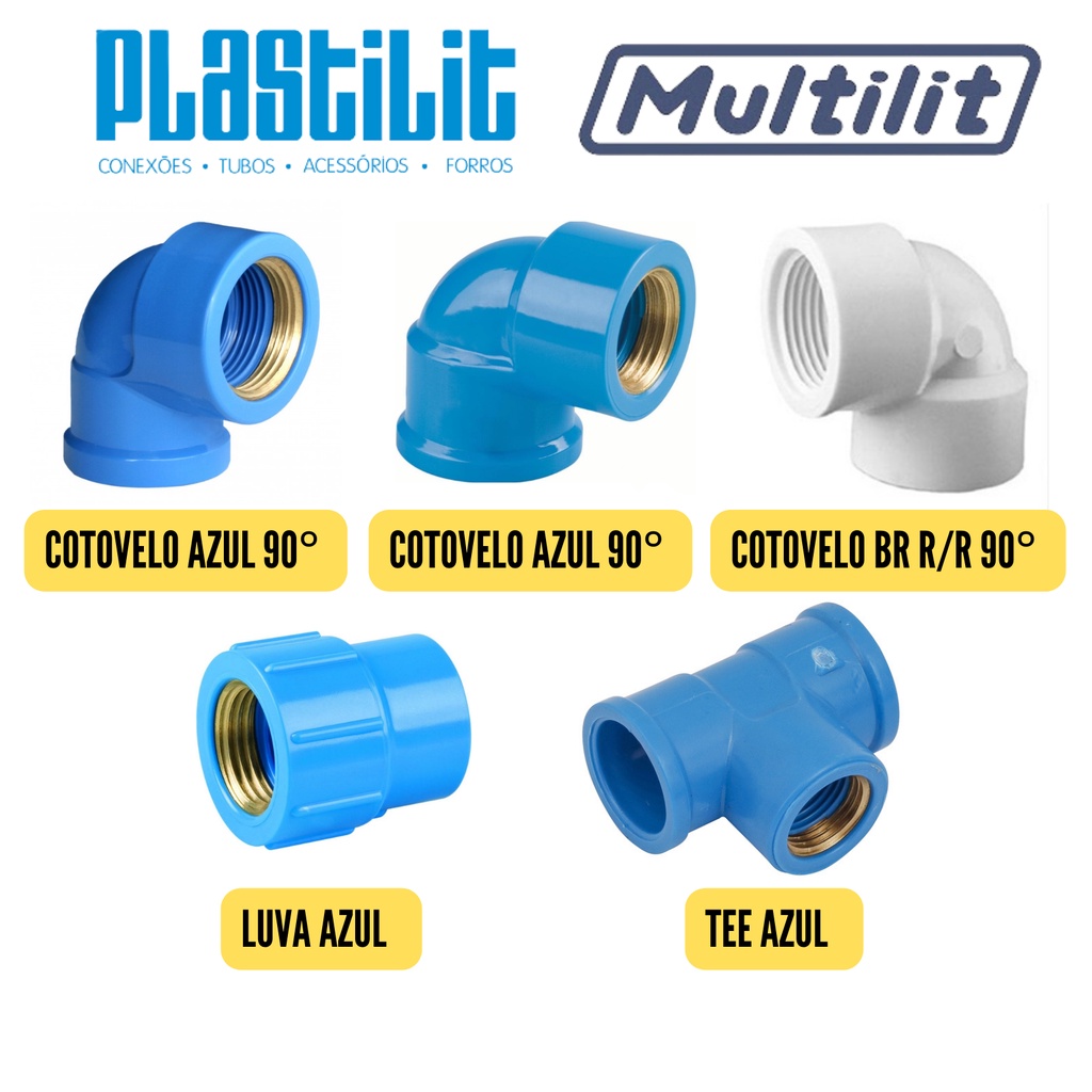 Conexões de Agua 3/4 Roscáveis - 25mm (AZUL) Cotovelo Curva 90° - Cotovelo BRANCO R/R - Luva - Tee