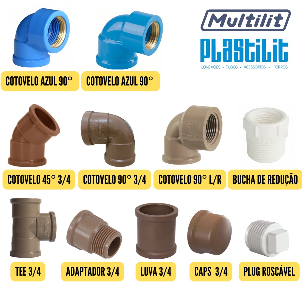 Conexões de Agua 3/4 - 25mm (MARROM) Cotovelo Curva 90° - Cotovelo Curva 45° - Luva - Tee - Caps - Luva - Adaptador