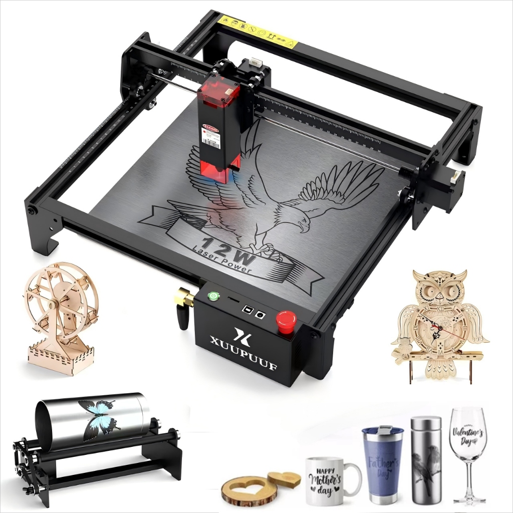 Xuupuuf-y12 Gravador a Laser Cnc Impressora Corte Laser 60w-30x30cm-Gravadora Corte Acrílico/MDF+rolo Giratório-XTTS10-0