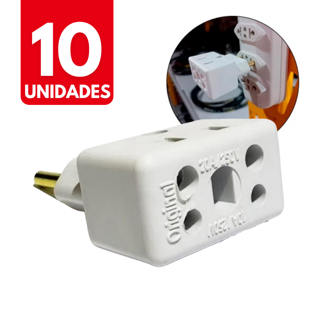 Kit Com 10 Adaptador De Tomada Bob Love 10a 20a 250V Bivolt Pino Plug Benjamim T Universal