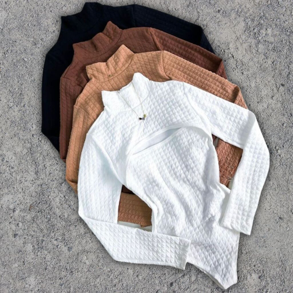 BODY FEMININO MODA GRINGA BÁSICO E ESTILOSO TENDENCIA COM MANGA LONGA E GOLA ALTA SUPLEX