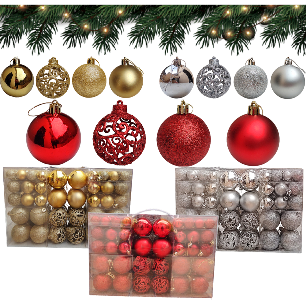 Kit 100 Bola De Natal Enfeite Decoração Pendurar Pendente Árvore Vermelha Prateada Dourada Decorada
