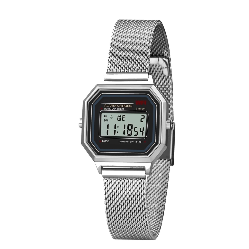 Atacado Relógio Cromado Cinza Digital De Pulso Led Malha Milanese Vintage Retrô Prova D'água Silver