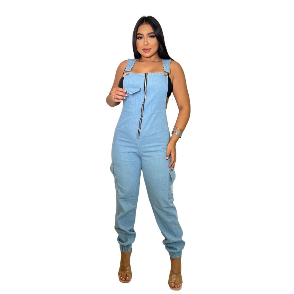 macacão jeans feminino longo ziper jogger macaquinho jerdineira jeans feminina calça curto adulto