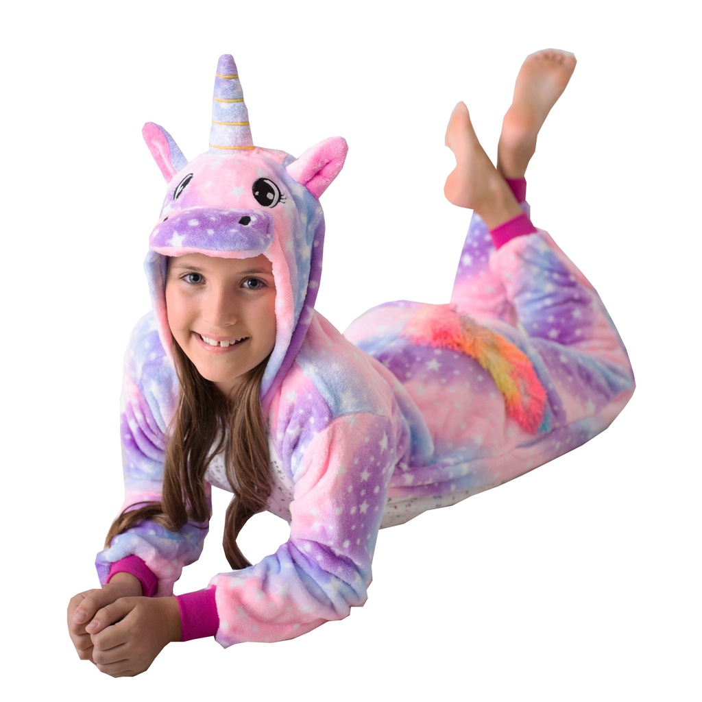 Pijama Macacão Infantil de Menina Unicórnio Kigurumi Estrelado - Pronta Entrega no Brasil