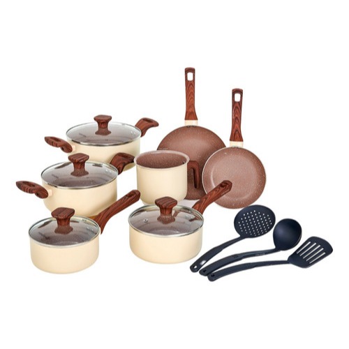 Jogo De Panelas Ceramica 10 Peças Aluminio Fundo Triplo Fogão Indução Antiaderente Mimo Style Pratic Cook Crema Com Panela Caçarola E Utensílios