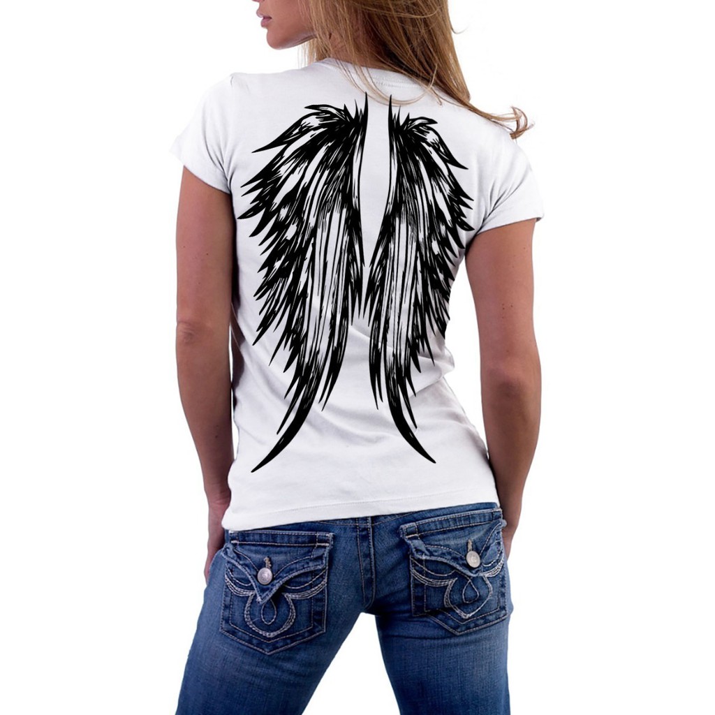 Baby Look feminina Angel Wings Asas De Anjo Tattoo