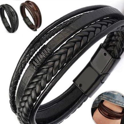3/4/5/6 Pcs Set Homens Pulseiras Moda Multilayer Braid Couro Bangles Jóias Presente Acessórios Atacado Fábrica