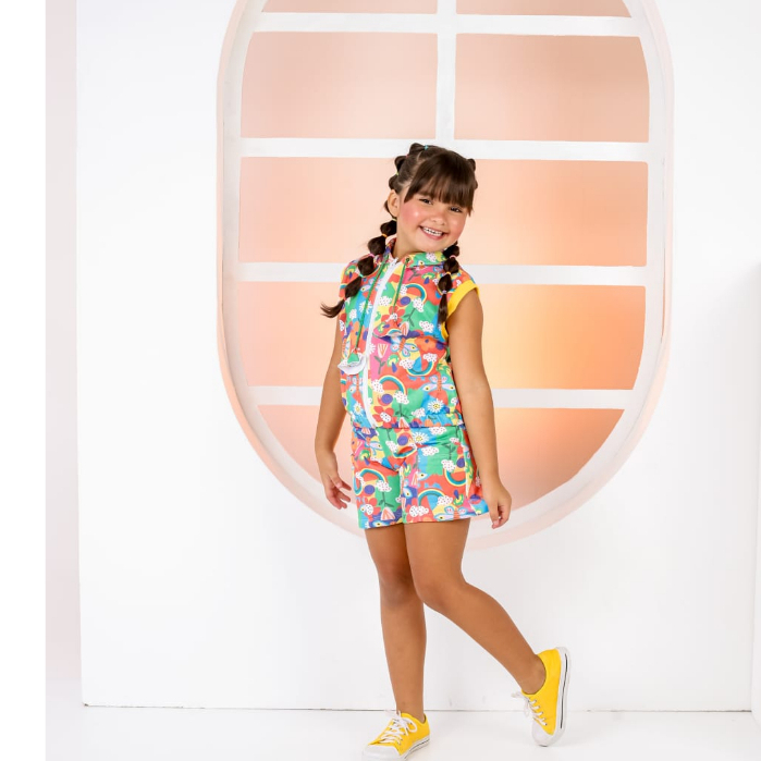 Conjunto infantil Menina 2 peças BÁSICO 1 ao 16 Verão em Cotom blusa e shorts