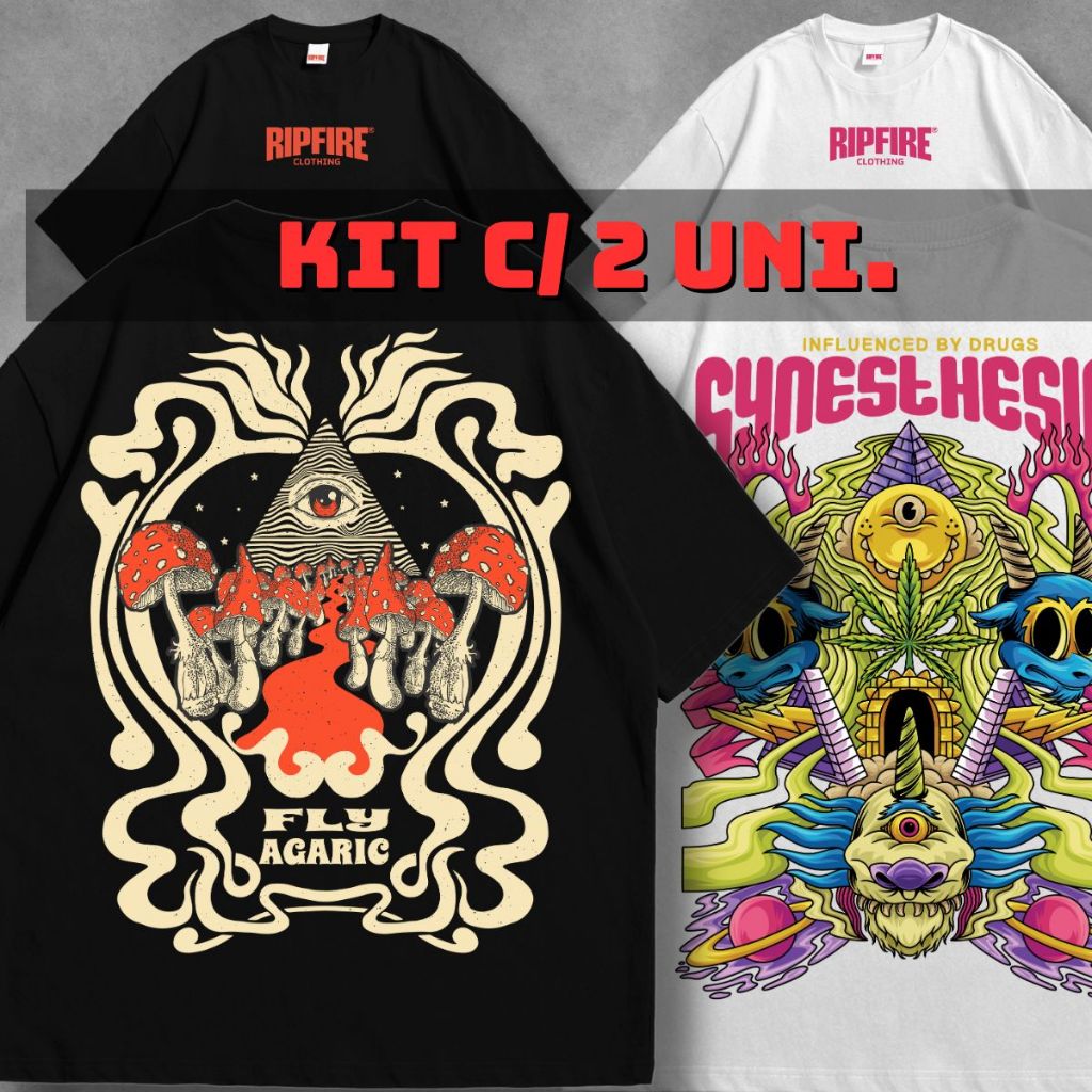 Ripfire Kit Camiseta Oversized Unissex Pisicodelic Mushroom Streetwear Estampa Grande