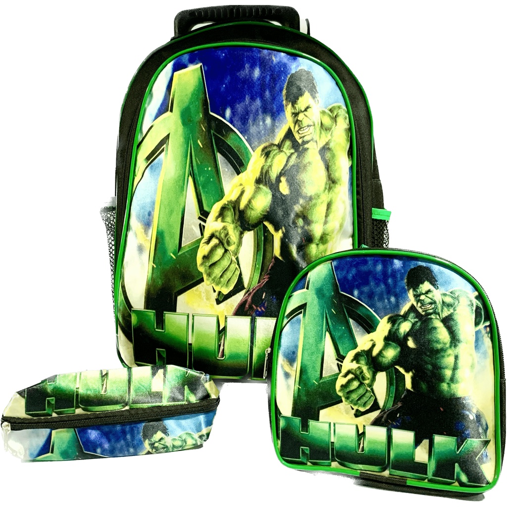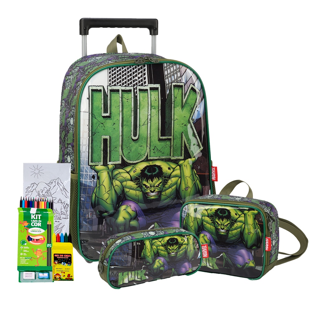 Kit Mochila Hulk Rodinha Lancheira Estojo Escolar Meninos